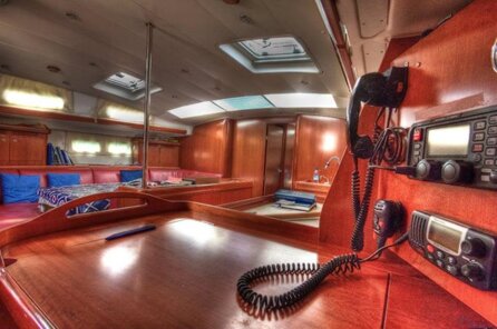Strumenti: VHF, GPS plotter cartografico, Eco, Log, stazione vento, autopilota, salpa-ancora elettrico, capote paraspruzzi, bimini, tender con fuoribordo